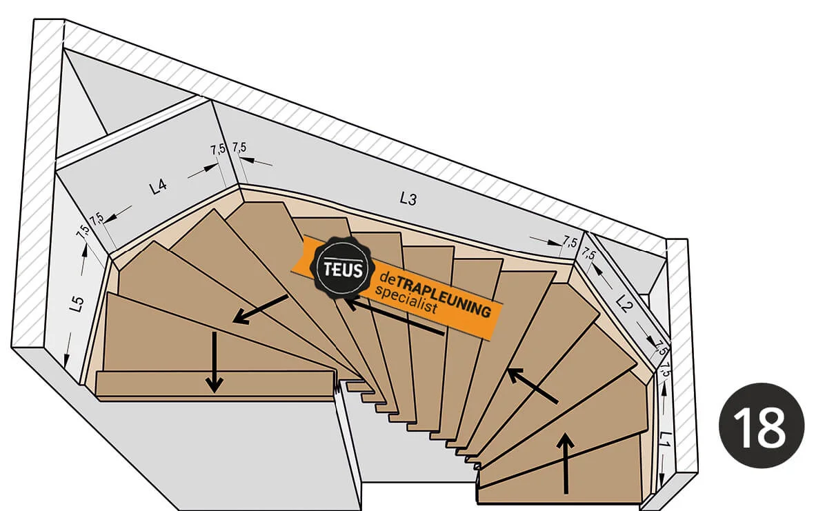Ja, uiteraard kan Teus alle trapleuningen van staal buigen. Wanneer het om gebogen trapleuningen gaat, zijn deze in vrijwel alle gevallen nodig voor een trap met een boven-hoek, een trap met een onder-hoek, of een combinatie hiervan. We noemen dat een onder kwart trap een boven kwart trap of een dubbelkwart trap.